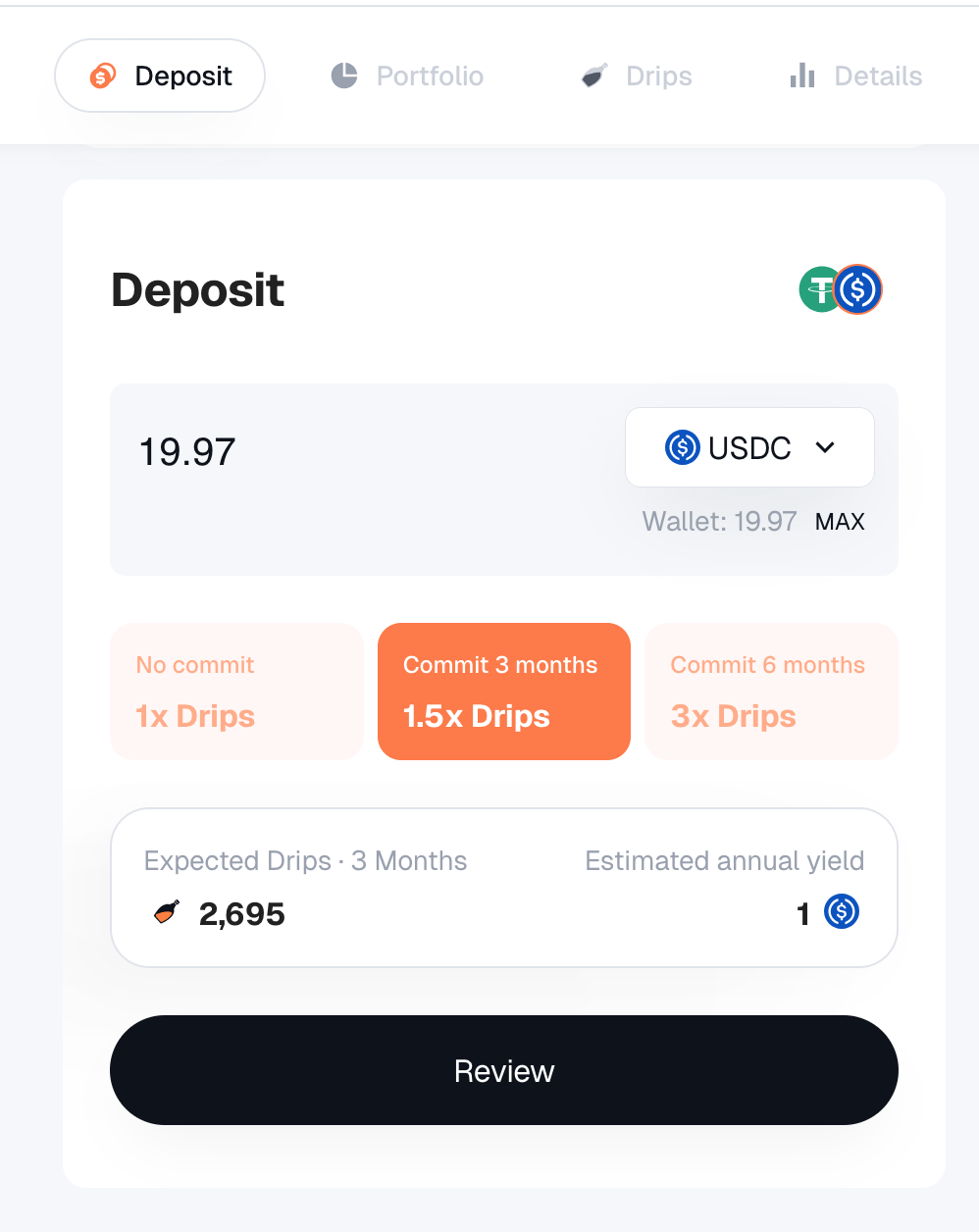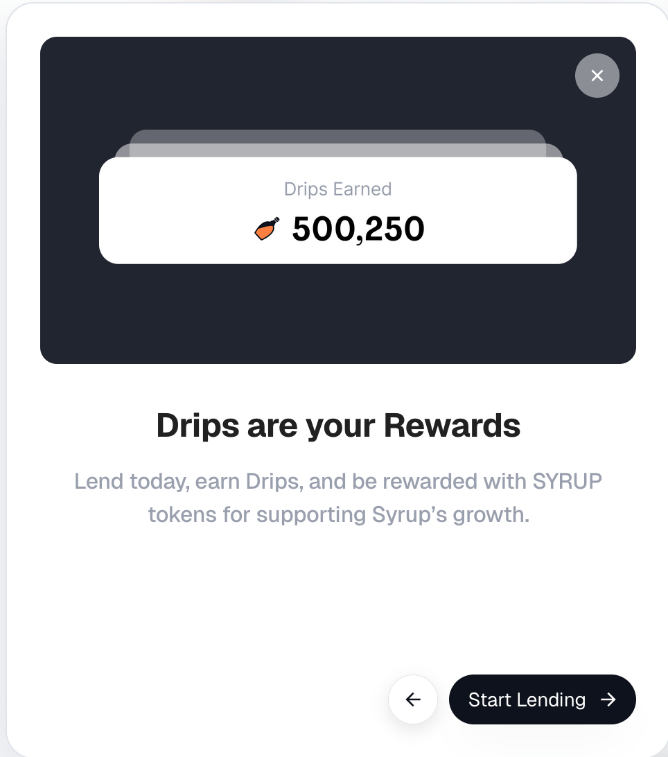 There will be some introductory information about the platform, including the rewards paid out, known as SYRUP tokens. Drips is an incentive program to boost your earnings.